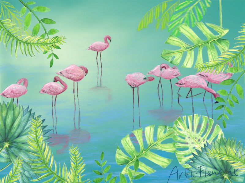 ‘ Look there is a new flamingo! He is the most beautiful of them all’ As he saw people pointing at him, he was surprised & became very shy. He looked at his #reflection and saw he was indeed a very beautiful.. #flamingo! . Last #illustration of #uglyduck for #colour_collective.