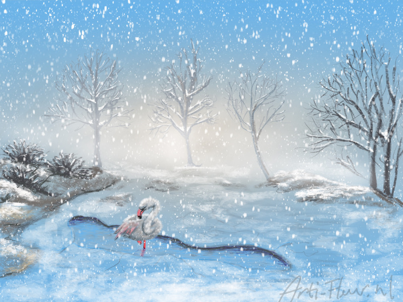 In the coldest #wintertime, he was all #alone. My #illustration for #colour_collective. #uglyduck part 4. #illustrator #artwork #flamingo