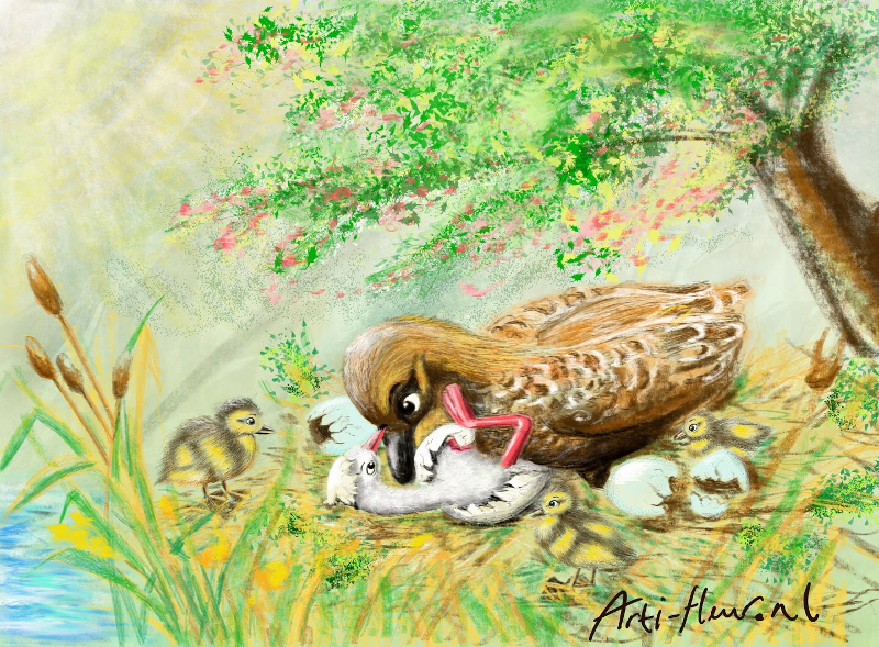 A few months ago I decided to make a series of the ugly duck story. I wanted to experiment a little with the style and digital art. Only in my story the ugly duck wasn’t a little swan.. 🙂